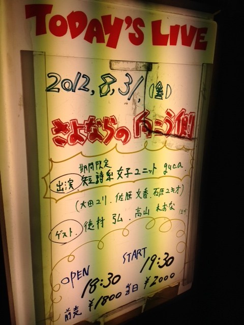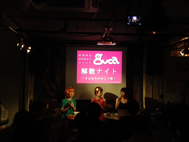 One thought on “2012.8.31 期間限定短詩系女子ユニットguca解散ナイト ~さよならの向こう側~ #guca4”