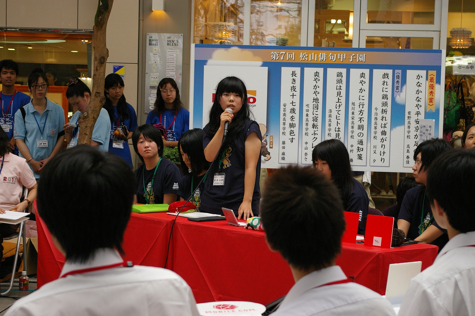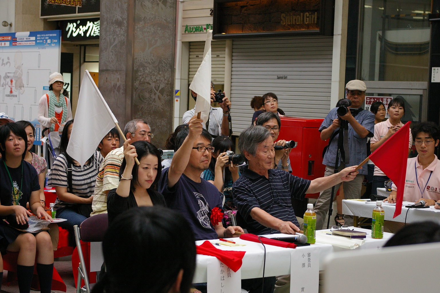 ウェルカムパーティーの夜が明けての大会初日は、松山の商店街・大街道で、12ブロックに分かれての試合が行われる。全国から集まった36チームが、リーグ戦・トーナメント戦をたたかって、最終的に、3チームに絞られるところまでが、この日の過程だ。翌日の大会二日目には、この3チームに、敗者復活戦を勝ち抜いた1チームを加えて、準決勝・決勝の試合が行われる。
