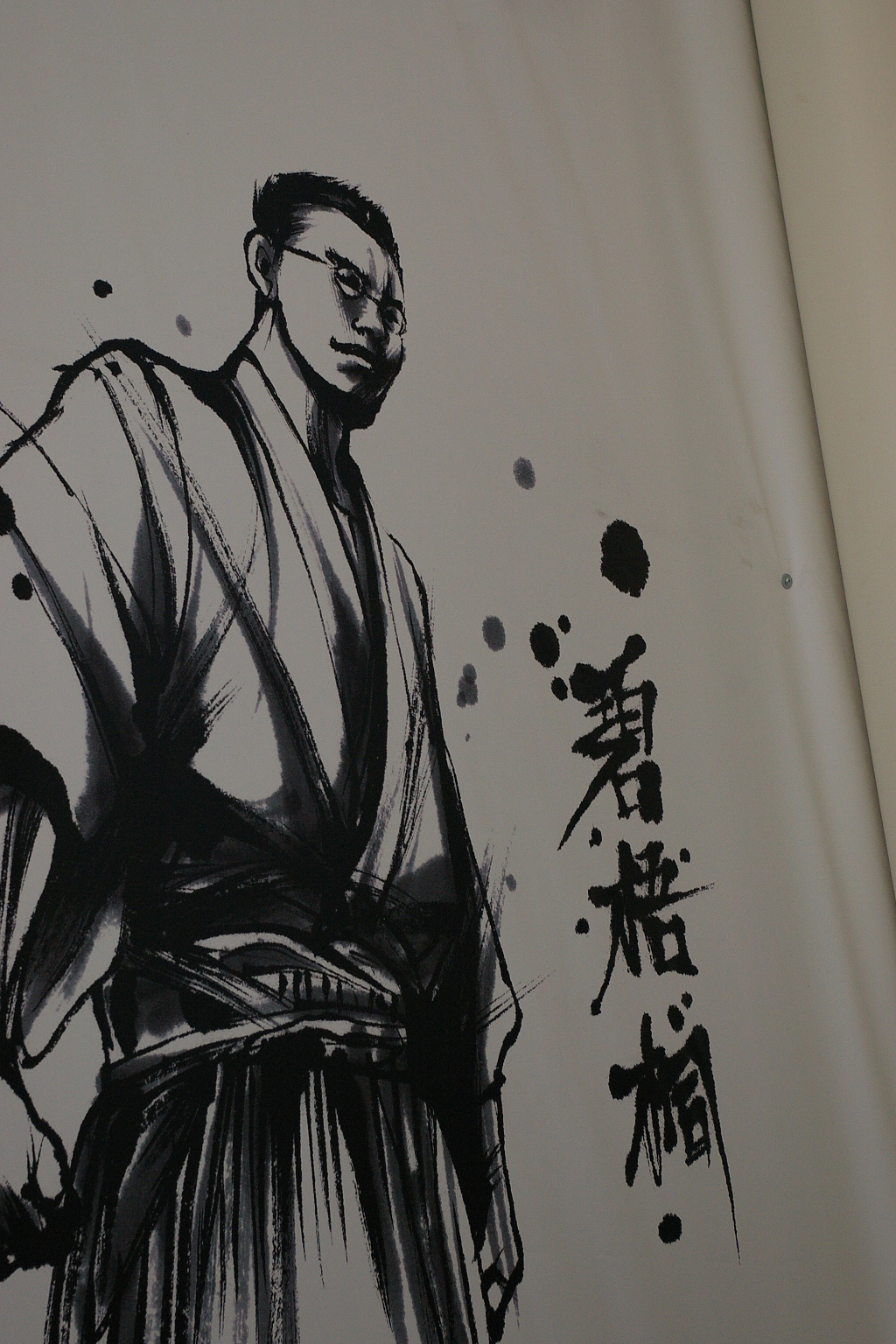 松山城へのぼるロープウェイ乗り場の壁に大きく描かれた、虚子とヘキゴトウ。即、バトル漫画に登場できそうな、ハードボイルドないでだちです。