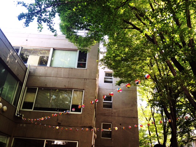 提灯のように紙風船が揺れてました。紙風船は春の季語ですが、乾いた秋の陽射しにも美しいな。