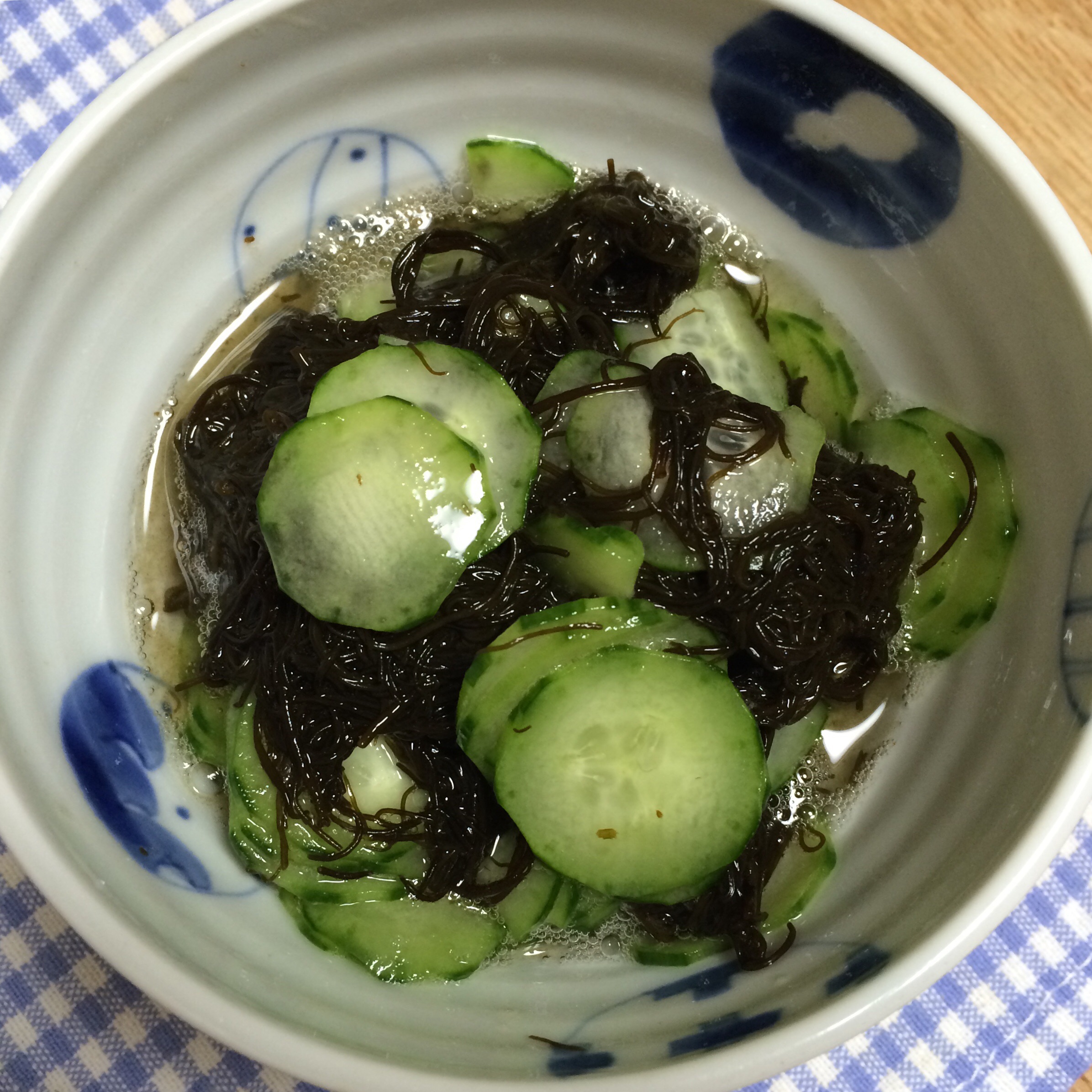 長岡の駅で買った佐渡のもずく。歯ごたえしっかり、風味はゆたか。三杯酢にて。