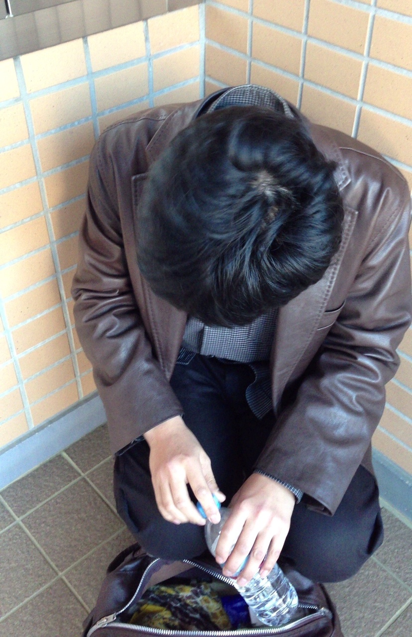 挨拶直前、マンションの下でしゃがみ込む麒麟