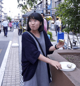 これは岩手県盛岡市の材木町の「よ市」の蒸し牡蠣うまい!、の写真。よ市では土曜の夕方になると歩行者天国となり屋台が並び、野菜やお花やお団子や地ビールやワインや焼いた海鮮を楽しめてしまうので、野外で飲むお酒がだいすきなわたしにはたまらない。この写真を撮ってもらったとき、わたしは青森から来たイラストレーターの工藤陽之さんとぬまりさんに盛岡を案内していた。工藤さんの個展に足を運んでその絵がだいすきになって、ワークショップに参加して仲良くなりこうして遊んで貰えるまでになるのだから、やっぱり好きってことは大きな声で本人にどんどん伝えたほうが良い。ふたりはわたしが紅茶を飲んでいても、みそ田楽を食べていても、ビールを飲んでいても、にこにこしながらそれを観察して時々うなずき、顔を見合わせて小声でなにか言い合ったりしながらわたしの写真を撮った。特に気にも留めず食べ続けていたが、牡蠣をつるりと飲み込んだらついにぬまりさんがふき出して「しかし、しあわせそうに食べたり飲んだりするねえ、牡蠣、そんなにおいしい、うんうん、よかったよかった。れいんちゃんにはいくらでもおいしいものを食べさせてあげたいよ」と笑った。わたしは赤面した。おいしそうに食べる、と言われることはもちろんうれしいのだけれど、それ以上に恥ずかしかった。なんというか、赤ちゃんだった時のわたしを褒められているような感じがしてくすぐったい。わたしはうれしそうにご飯を食べる人のことが好きで、それは大きな赤ちゃんのようだから愛しくて好きなのだけれど、まさか自分もそうだとは思わなかったのだ。